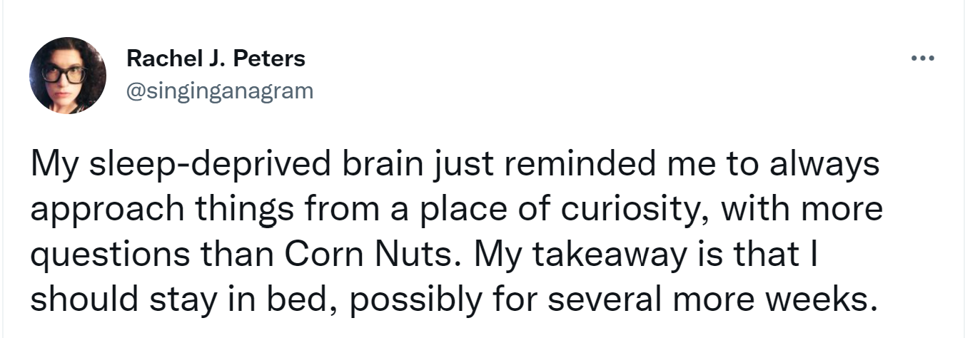 It sounds like a blockbuster movie franchise, but it’s simply a reflection after working on three different operas in as many cities in as many weeks. While I am always aware that this is the life I’ve been working toward forever, I don’t recommend a schedule this dense as a constant way of life. I’ve been home since Friday, and my just-about-to-turn-45-years-old body is still recovering from around-the-clock rehearsals and rewrites (and complimentary hotel breakfast sandwiches). This tweet of mine from mid-journey, on the right here, sums it up pretty well: